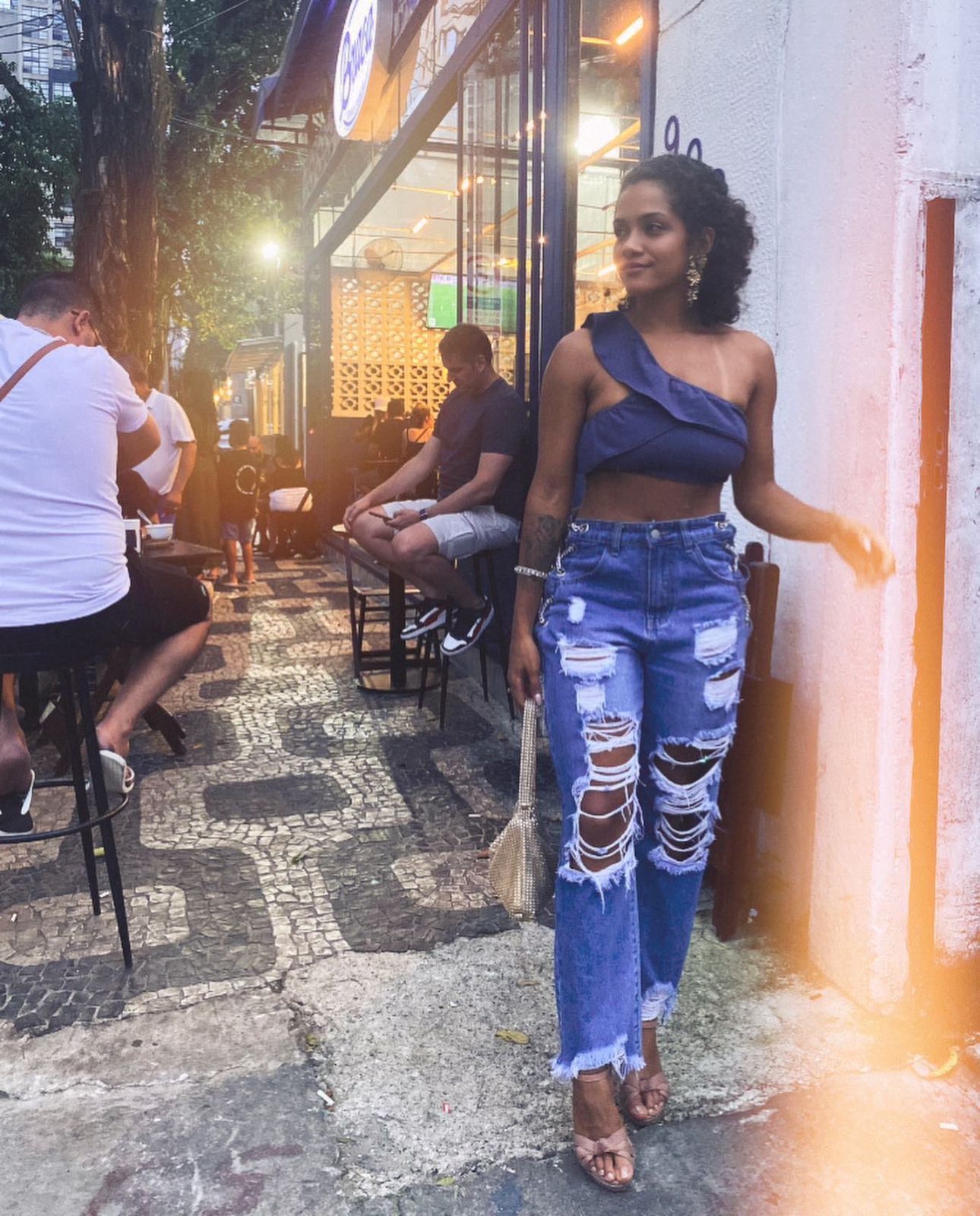 Por lá, logo na entrada, é possível notar a calçada do Leblon, onde fica localizado o bar Bracarense, que leva todo o ar carioca dando boas vindas ao cliente. No ambiente, as paredes têm azulejos azuis com desenhos geométricos que fazem parte do projeto arquitetônico onde também foram utilizados blocos de elemento vazado, os tão famosos cobogós. Ainda para carimbar o espaço, pisos de cacos dão um charme ao local além das cores da marca que foram fortemente empregadas e estão presentes em todo o bar.