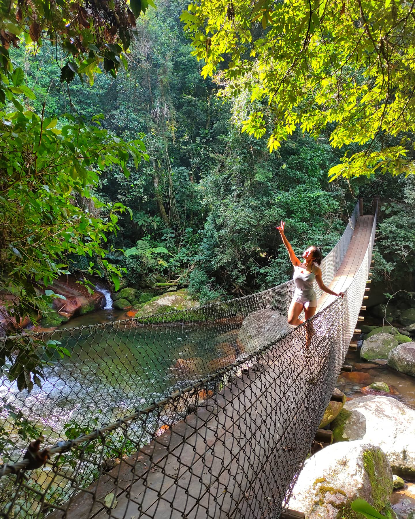 Ao chegar na cachoeira, atravesse uma pequena ponte suspensa onde muitas pessoas gostam de tirar fotos que leva até o outro lado. Aí é só descer um pouco mais a trilha e você já verá a entrada. Como toda cachoeira, é preciso muito cuidado, pois o piso de pedras é escorregadio. A cachoeira tem uma grande piscina e tobogãs na pedra que são os encantos naturais da cachoeira da Laje, onde é possível escorregar sentado e deitado, e finalizar com o banho em um enorme poço de água doce.